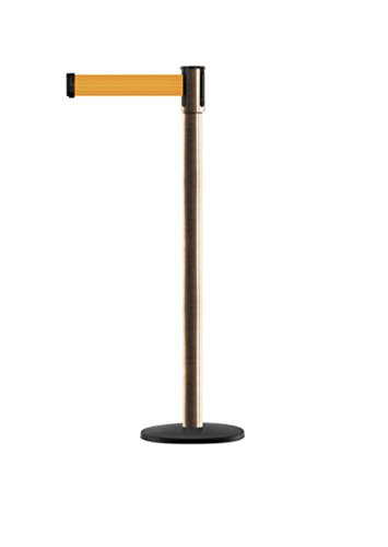 Tensabarrier - 890B-33-2S-2S-MAX-NO-F2X-C - satin brass post, 2" wide, 13' length Florescent Orange belt