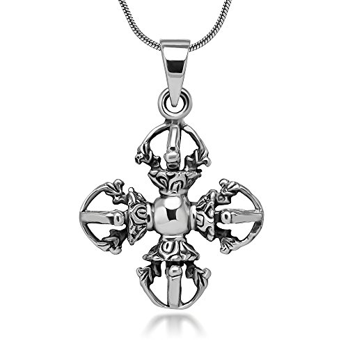 -. Title : Sterling Silver Tibetan Buddhist Double Vajra Dorje Phurba 3D Amulet Protection Necklace 18"