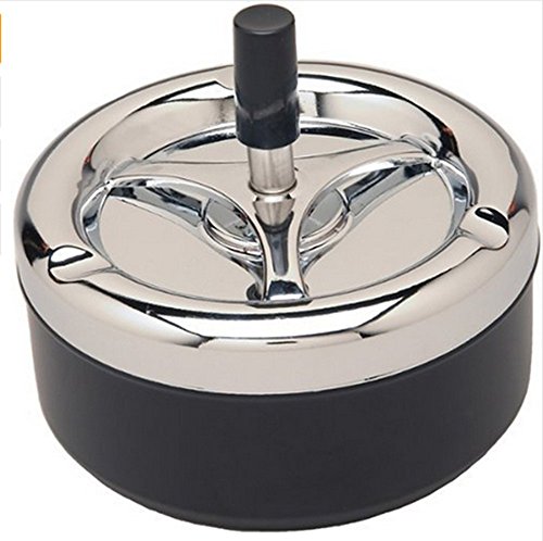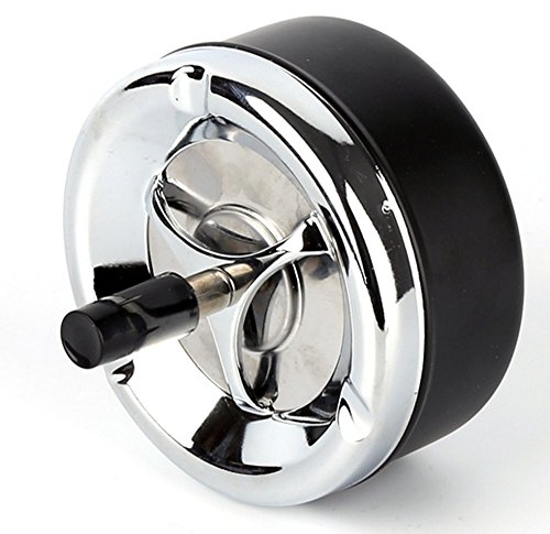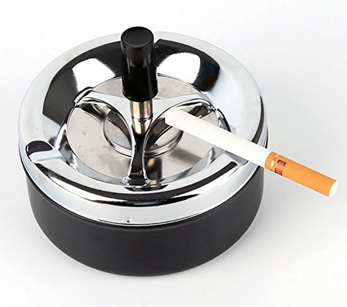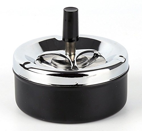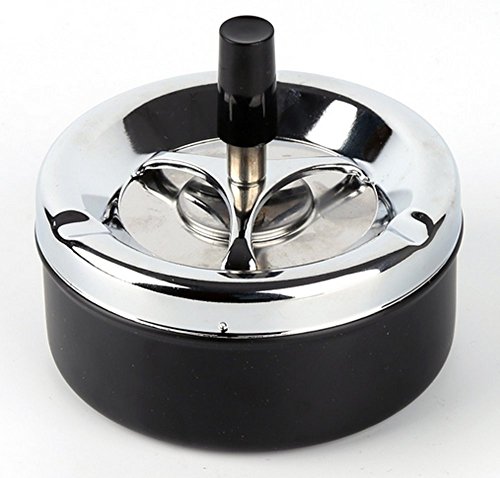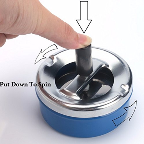 -. Binding : Kitchen -. Brand : zoele -. Feature : Easy to cleaning. / Can also be used as desk decoration. / Great for home or office use. / Ash in the the small well of this ashtray then push down on the black button and watch it spin your ashes to the bottom of the ashtray. / You can even put your finished cigarette butt in the ashtray and it will take it and suffocate it for you! Twist off the top and easily empty it! -. IsAutographed : 0 -. Label : LX -. Manufacturer : LX -. Model : ZYYHG-1 -. ProductGroup : Home -. ProductTypeName : HOME -. Publisher : LX -. Studio : LX -. Title : Top Quality Portable Home Metal Ashtray Spinning Rotation Plain Large Capacity Rotation Cigarette Ash Tray Push Down Smoking