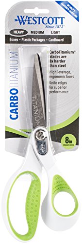 Carbonitride Titanium bonded blades are 8x harder than untreated stainless steel and will stay sharper longer. Westcott develops home and office products unmatched in style, design and performance. We continue to deliver results that are both inspirational and functional, earning the title of "The World's Favorite Scissors" year after year.Feature