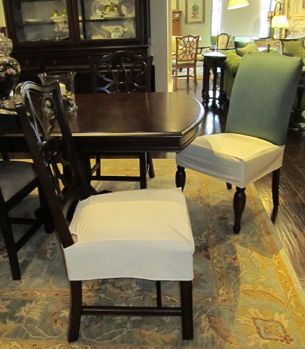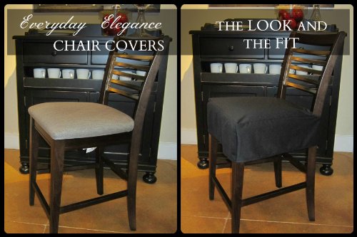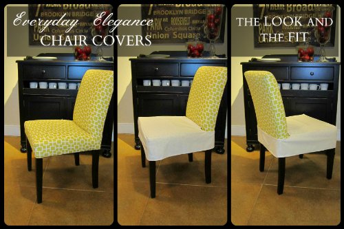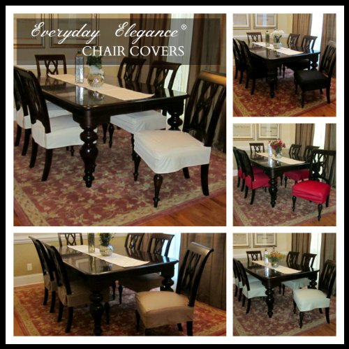 - Feature : Easy On-Easy Off, Washable, Waterproof Dining Chair Covers 2-pack / Protects chairs from spills, stains and scratches from kids, pets and daily wear-Comfortable polyester surface with plastic waterproof backing / Redecorate, rejuvenate and give your kitchen or dining room a new look easily and inexpensively / Fits most standard dining chairs (~ 19"W x 18"D), including those with open or closed backs / Easy to Use-one simple Velcro strap in back (no tying and no need to turn the chair over)