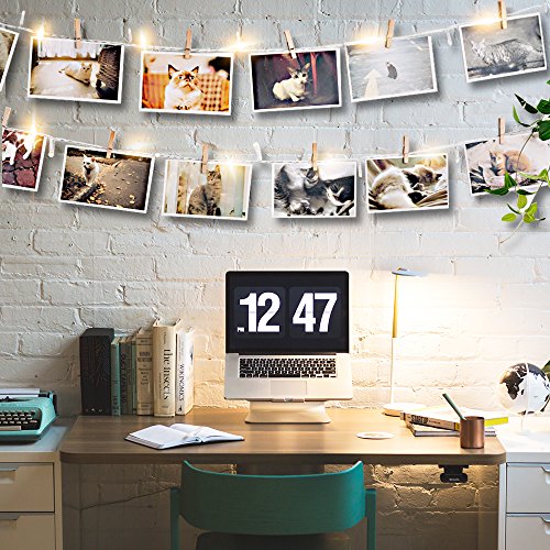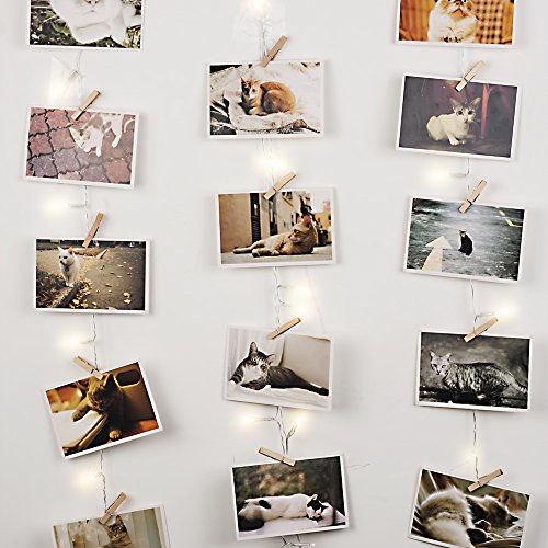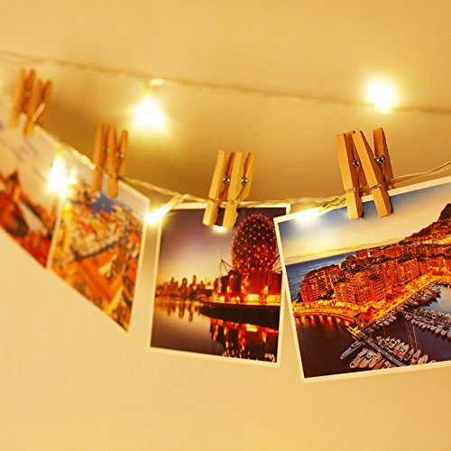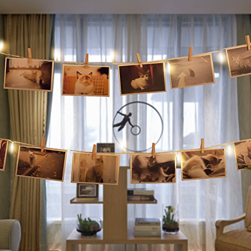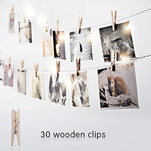 Veesee 30 LED Wooden Photo Clip String Lights, DIY Hanging Pictures Display Fairy Lights,USB Powered , Birthday Wall Decor for Teen Girls Couples Kids Indoor Bedroom Anniversary Dorm Room(Warm White)
