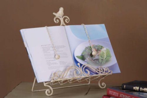 Creative Co-op DE1255 Metal Cookbook Holder with Bird, 15-Inch, Cream