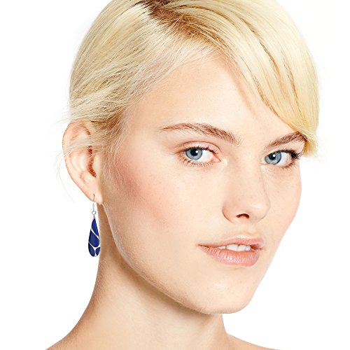 -. Feature : Metal: Sterling silver | Trademark: Stamped 925 | Stone: Simulated lapis lazuli | Color: Blue / Overall Measurements: 9 mm (0.35 in) wide x 45 mm (1.77 in) long (including hook) / Weight: 4.8 grams | Finish: Shiny, Dangle, Drop | Style: Dressy, Daily, Fashion / Earring Type: Pierced dangle earrings | Closure: Fish hooks / Includes an original AERAVIDA jewelry gift box. Perfect for gift giving to someone special or keep for yourself!