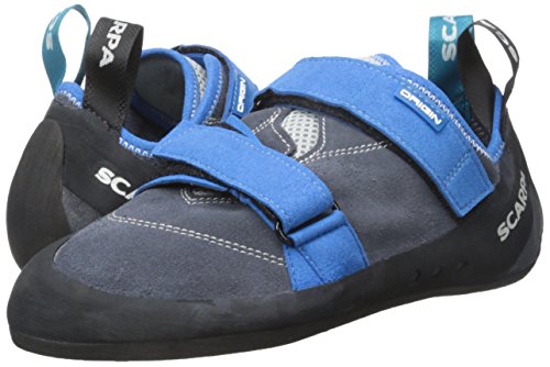 -. Feature : Passive randing offers classic performance / Scarpa's proprietary vision rubber / Flat lasted construction delivers all-day comfort and performance / Dual power strap closure allows for maximum adjustability