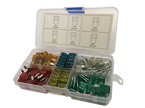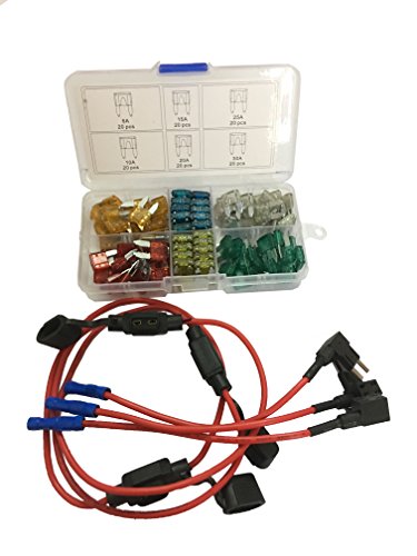 KOLACEN Automotive Car Truck Mini Blade Type Fuse Assorted Kit 120 Pieces + 3 Pieces In-line 16 Gauge Mini Fuse Holder + 3 Pieces 16 Gauge Add-a-circuit Fuse TAP Adapter