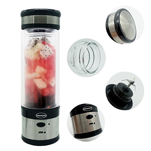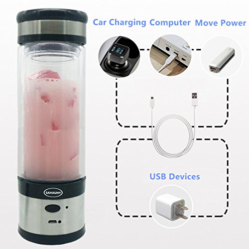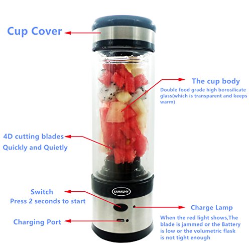 Brand: SAHAUHY Capacity:280ml Size:9.1 x 2.7 in Weight:1.4Ib Blade Material: 304 Stainless Cup Material:double food grade high borosilicate glass(which is transparent and keeps warm) Bottom material:ABS Stainless Motor rotation speed:No-load: 22000RPM Load: 15000RPM Battery style: 3.7V Working current: 10-12A Battery capacity: 2600mAh Charging port:USB Charging time: About 3-4 hours