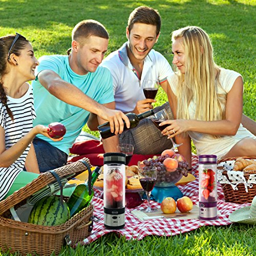 1.Charge for 3-4 hours before using. 2.add fruit you like,Cut the fruit into 0.6 x 0.6 in,too big will stop the blade from moving. 3.add water or milk to 70%-80%(do not add very hot water). 4.Press the switch 2 seconds to start and gently shake the bottle,Usually It takes 20 seconds to 50 seconds for tasty juice,the Blender stops automatically in 45-60 seconds.You can start it again,if you need. 5.Press the switch to wait for the juicer to stop and enjoy the fresh and healthy fruit juice. 6.Note: When clean the blade, please pay attention to safety,Keep the charging port and the switch away from water. 7.When the red light shows,The blade is jammed or the Battery is low or the volumetric flask is not tight enough.Charge 3-4 hours,can squeeze 6-10 cup of juice.