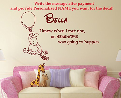-. Title : Name Wall Decal Quote Winnie the Pooh Vinyl Sticker Decals Quotes Adventure Quote Personalized Custom Name Nursery Decor Baby Room x144