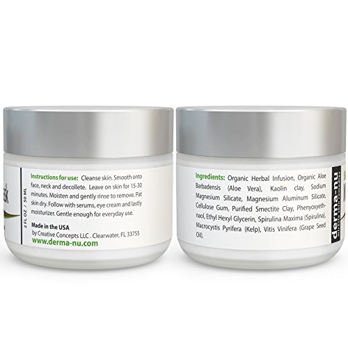 EXPERTLY COMBINED, HIGH QUALITY SKIN NUTRIENTS like Spirulina, Kelp, Aloe Vera, Magnesium & Grapeseed Oil have been infused with dozens of botanical actives, pure plant oils and organic vitamins and minerals for maximized results from this facial mask