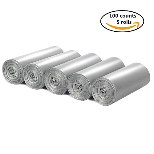 Household Small Trash Bags- Garbage Bags 100 Counts / 5 Rolls / 6.5 gallons, Strong Metallic Silver Wastebasket Trash Bags for Office,Home,School