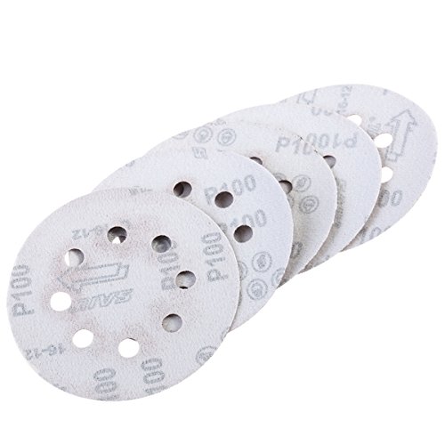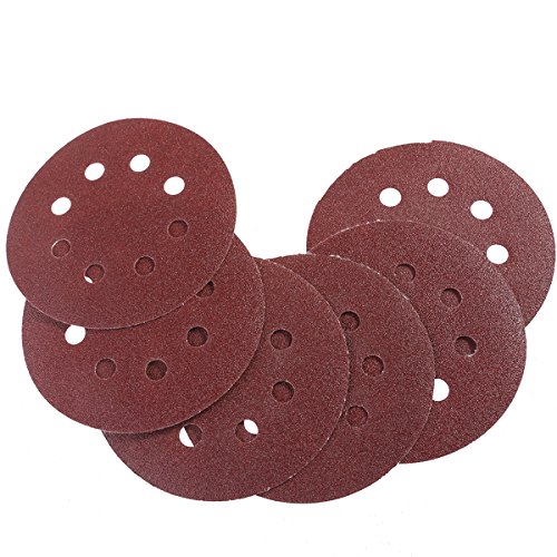 UEETEK Hook and Loop Sanding Discs 8 Hole 5 Inch 100 Grit Sandpaper round shape(A pack of 50)