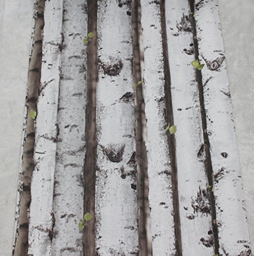 HaokHome 151033 Vintatge Birch Tree Wallpaper Rolls Black/Green/Grey Forest Wood Designer Home Interior Decoration 20.8" x 393.7"