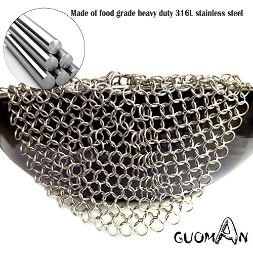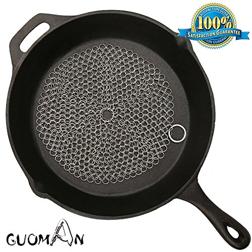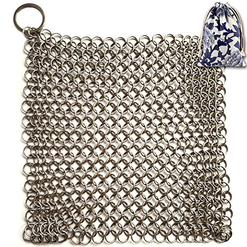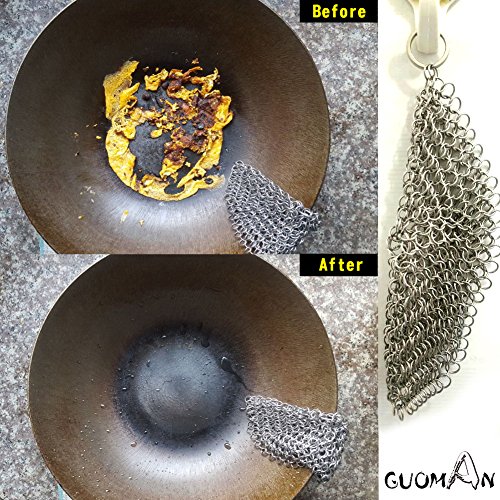 It is the absolute ideal way to effectively and easily clean your cast iron cookware without stripping away accumulated flavor and seasoning. Harsh detergents, poorly made chainmail scrubbers and low grade stainless steel can damage the carefully preserved seasoning. It works great for woks, casserole dishes, clay pots, glassware, baking pans or other heavy duty cleaning.