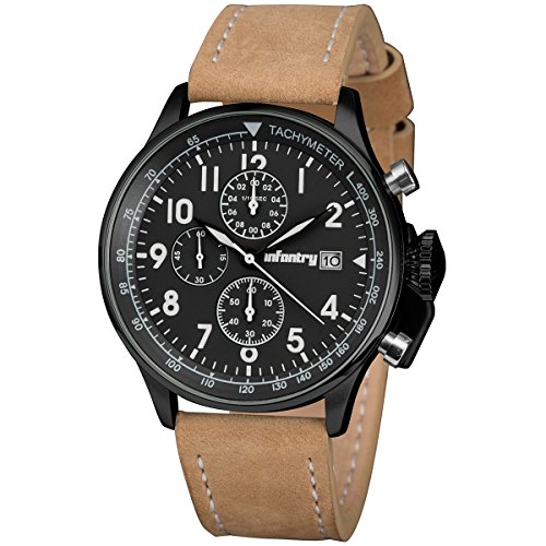 -. Title : INFANTRY Mens Aviator Pilot Chronograph Military Analog Sports Wrist Watch with Brown PU Leather Band