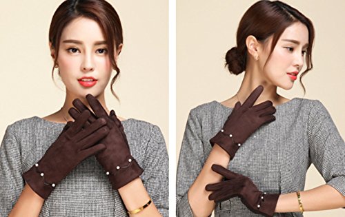 Binding : Apparel Product Description Information: This high-quality touch screen gloves keep your all fingers under warm protection from the cold while allowing you to navigate your touchscreen devices at ease. Good looks and available colors make you fashionable and special even in cold days. Feature: Material: Suede leather Gender: female Type: screen touch gloves, women's winter gloves Package: a pair of women's gloves Notice: 1. The actual color may vary slightly from the online image due to monitor color settings. 2. Please allow slight measurement deviation for the data. 3. These gloves are one-size-fits-all and stretch to accommodate all sizes; however, they may not be suitable for super-large hands, please understand it.