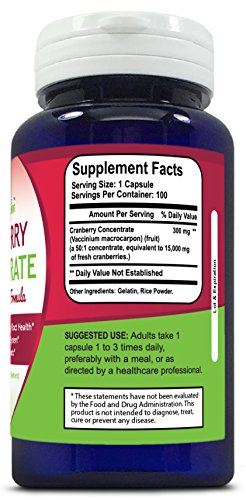 POTENT & EFFECTIVE: 300 mg of Cranberry per capsule. A 50:1 concentrate equivalent to 15,000 mg of fresh cranberries.