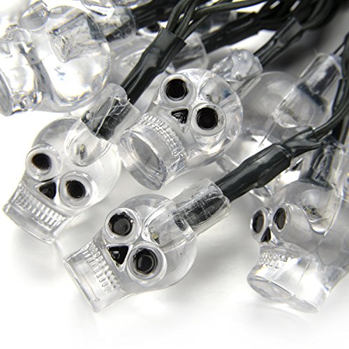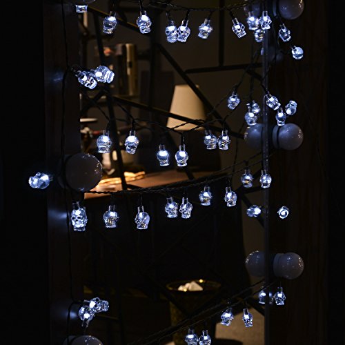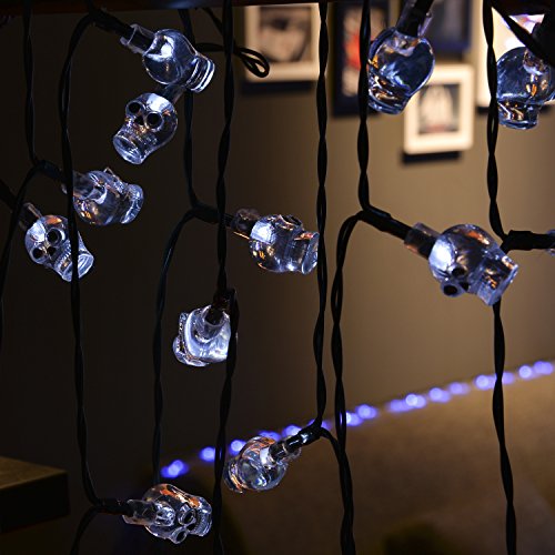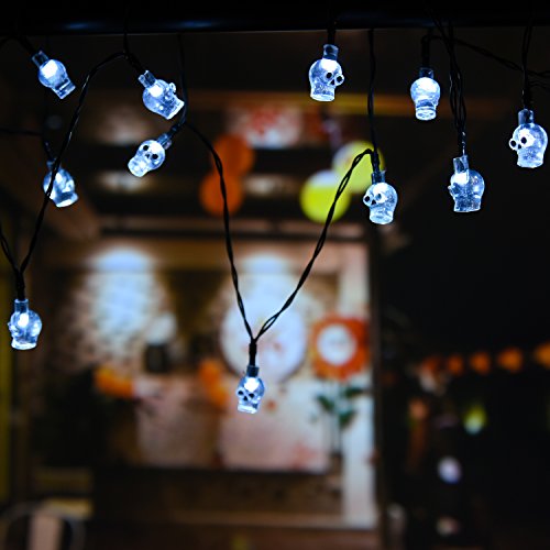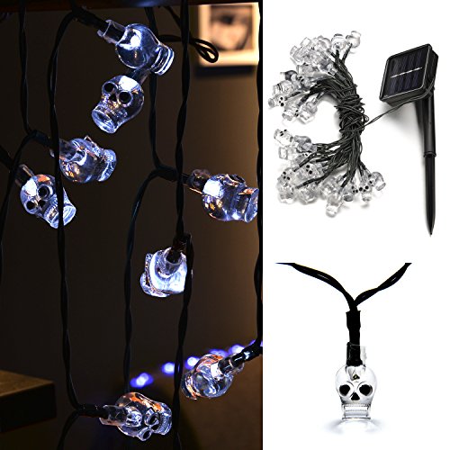 WEANAS Solar Powered White Skull Lights String, 20ft 30 LED Cool Party Lights, Decorative Lights for Indoor/Outdoor, Halloween, Surprising Gift