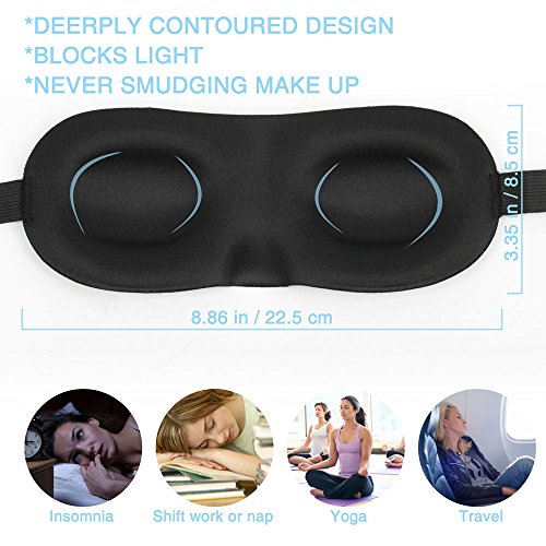 Slim and Lightweight Sleep Mask Advanced 3D Technology to fit for all Men, Women, Children and Travel, Shift Work, Meditation etc. Its extra large eye cavities ensure that mask will never feel cramped; Instead spacious and cozy.