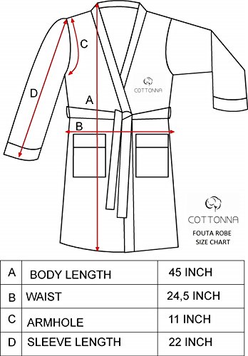 Cottonna 100% Turkish Cotton Fouta Bathrobe - Terry Cloth Inside and Peshtemal Outside - Peshterry Robe - Hammam Collection