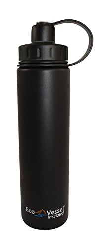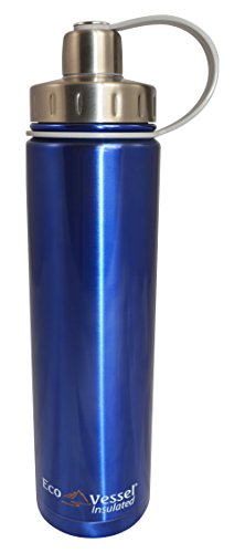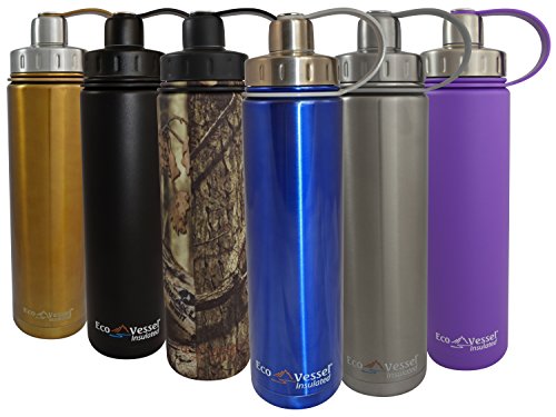 Eco Vessel BOULDER Vacuum Insulated Stainless Steel Water Bottle with Dual Opening Top and Tea, Fruit, Ice Strainer - 24 ounce/700 ml - Purple Haze