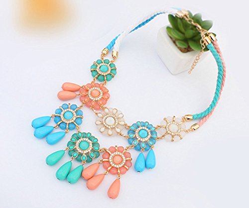 -. Title : The Starry Night Dazzle Colour Diamond National Style Drops Pendant Flower Necklace for Womens Girls