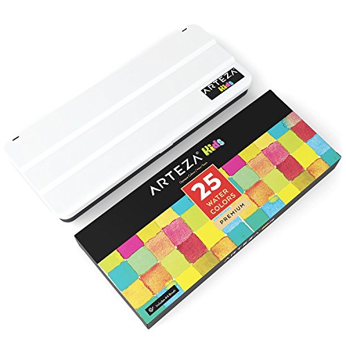 Arteza Kids Premium Watercolor Paint Set, 25 Vibrant Color Cakes, Includes Paint Brush (Set of 25)