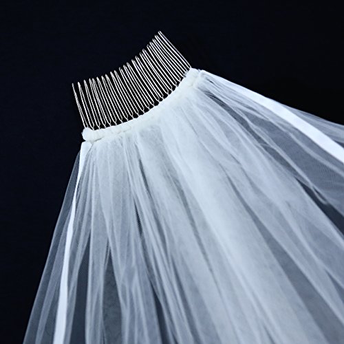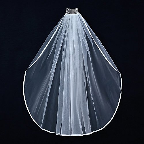 Pinkpunk 1T 1 Tier Ribbon Edge Wedding Bridal Veil Ivory