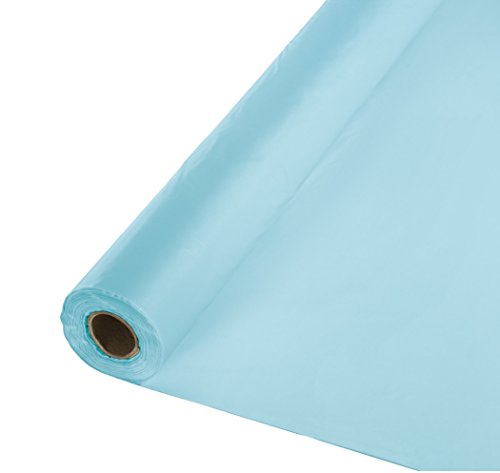 [Description] Plastic table cover banquet roll in Teal Lagoon 250-Feet in length Conveniently in a roll for easy storage before use; cut to size Great for picnics and barbeques_ birthdays_ holidays_ graduation parties and everyday Coordinate Creative Converting``s Touch of Color napkins_ plates_ cups and table covers as accents to our themed ensembles and patterns