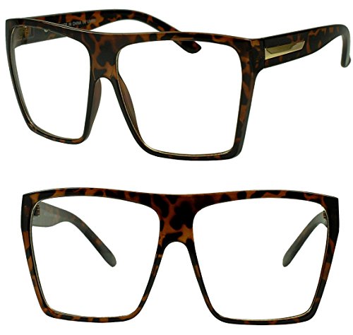 -. Title : XL Oversized Square Flat Top Eye Glasses - Clear Lens UV400
