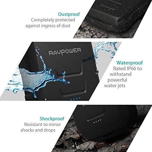 -. Title : Portable Charger, RAVPower 10050mAh Outdoor External Battery Pack Waterproof Dustproof and Shockproof Red Power Bank Charger Built-in Flashlight; iSmart Technology - Black