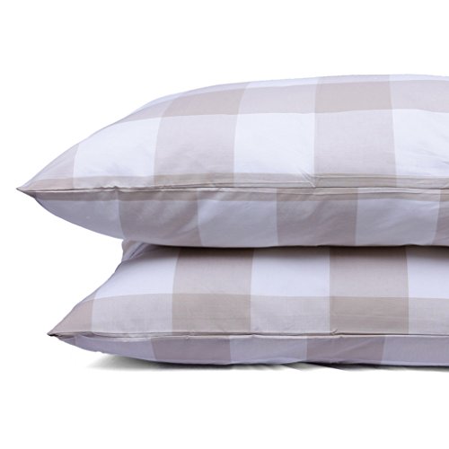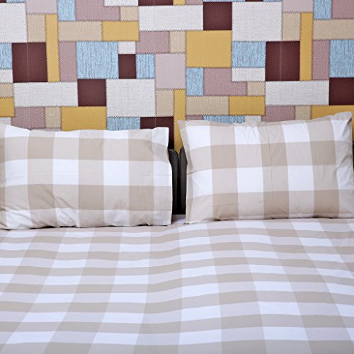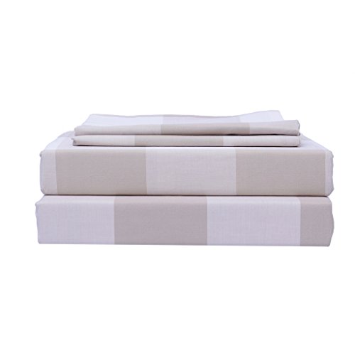 Just Linen 300 Thread Count Yarn Dyed 100% Cotton Damask, Contemporary Checks Brown , Queen Bedding Sheet Set with Deep Pocketed Fitted Sheets