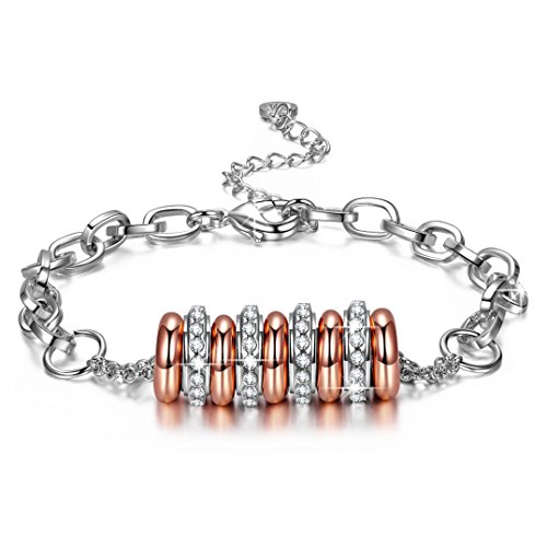 -. Title : J.NINA "String of Happiness" 14k Rose-Gold & White Gold Plated Bracelet, Nine Circles Design Hand String
