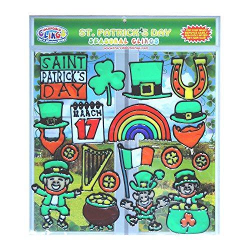 Saint Patrick's Day Holiday Gel Clings - 20 Piece Irish Window and Wall Clings - Reusable and Removable Thick Strong Vinyl Gels - Leprechaun, Shamrock, Clovers and More!