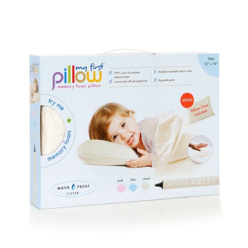 My First Kids Toddler Pillow Premium Memory Foam Toddler Pillow with Pillowcase, Cream, 12" x 16"