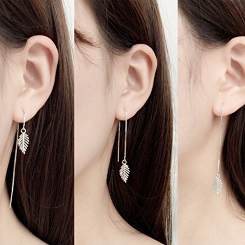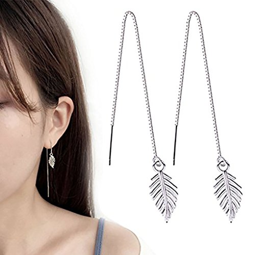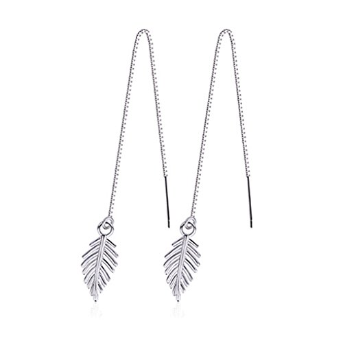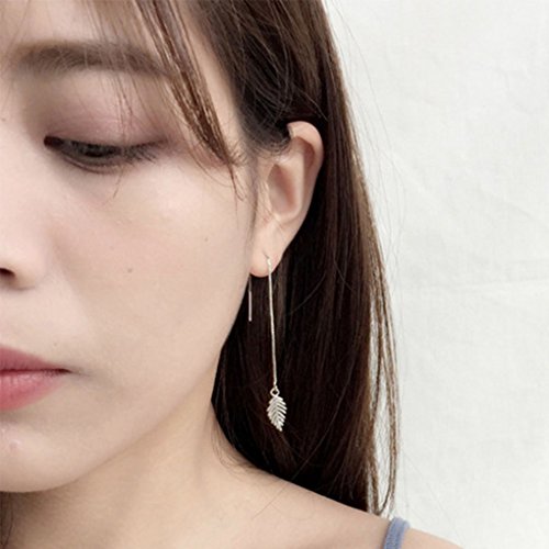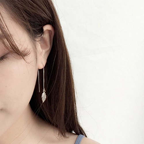 Leiothrix Hypoallergenic Geometrical Ear Line Leaf Dangle Earrings Silver Jewelry for Women and Girls