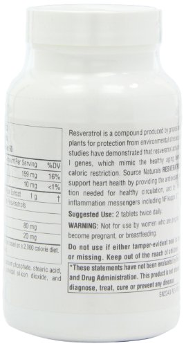 ReleaseDate : 2015-06-22 Studio : Source Naturals Publisher : Source Naturals Binding : Health and Beauty Product Description Produced by grapes and other plants for protection from enviornmental stresses;May help support heart health by providing the antioxidant protection needed for healthy circulation and by inhibiting inflammation messengers;May help with healthy aging 0