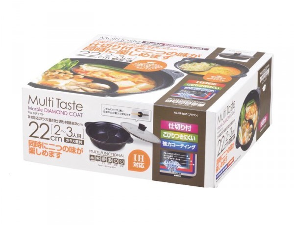 仕切り付きで二つの味が同時に楽しめます。辛口好きの方も苦手な方も一緒に楽しめるので、お子様のいるご家庭でも大活躍。耐久性に優れキズに強い、マーブルダイヤモンドコートが施されています。 |