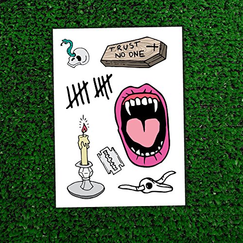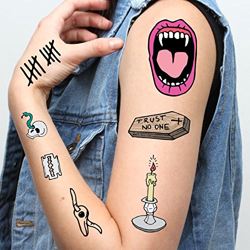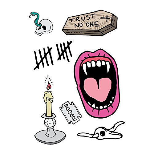 Tattify Halloween Collection Temporary Tattoos - Death Awaits (Set of 2 Sheets) - Colorful Halloween Horror Removable Fake Tattoos - Long Lasting and...