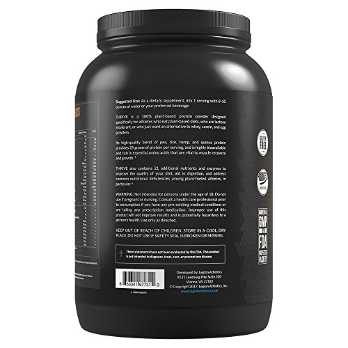 -. Feature : THE BEST VEGAN PROTEIN POWDER: Delicious plant based protein for building muscle and losing fat / WITH h.e.m.p PROTEIN, BROWN RICE PROTEIN, & PEA PROTEIN: A blend of the absolute best plant proteins / GLUTEN-FREE & NON-GMO PLANT BASED PROTEIN POWDER: A dairy free protein powder with no gluten or GMOs / NUTRITIONALLY ENHANCED: This plant protein powder is fortified with 10 nutrients and 4 enzymes / 100% SATISFACTION GUARANTEED: We hope you love Thrive, but if you don't, you get your money back.