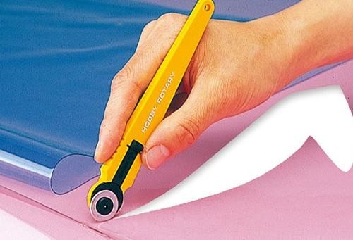 | 小さなカーブも自在に切れるステンレス製直径18mm円形刃を装着したロータリーカッターです。布や紙をじはじめ、薄手のゴムシート、フィルムなどの切りにくい素材も自在にカットできます。 |