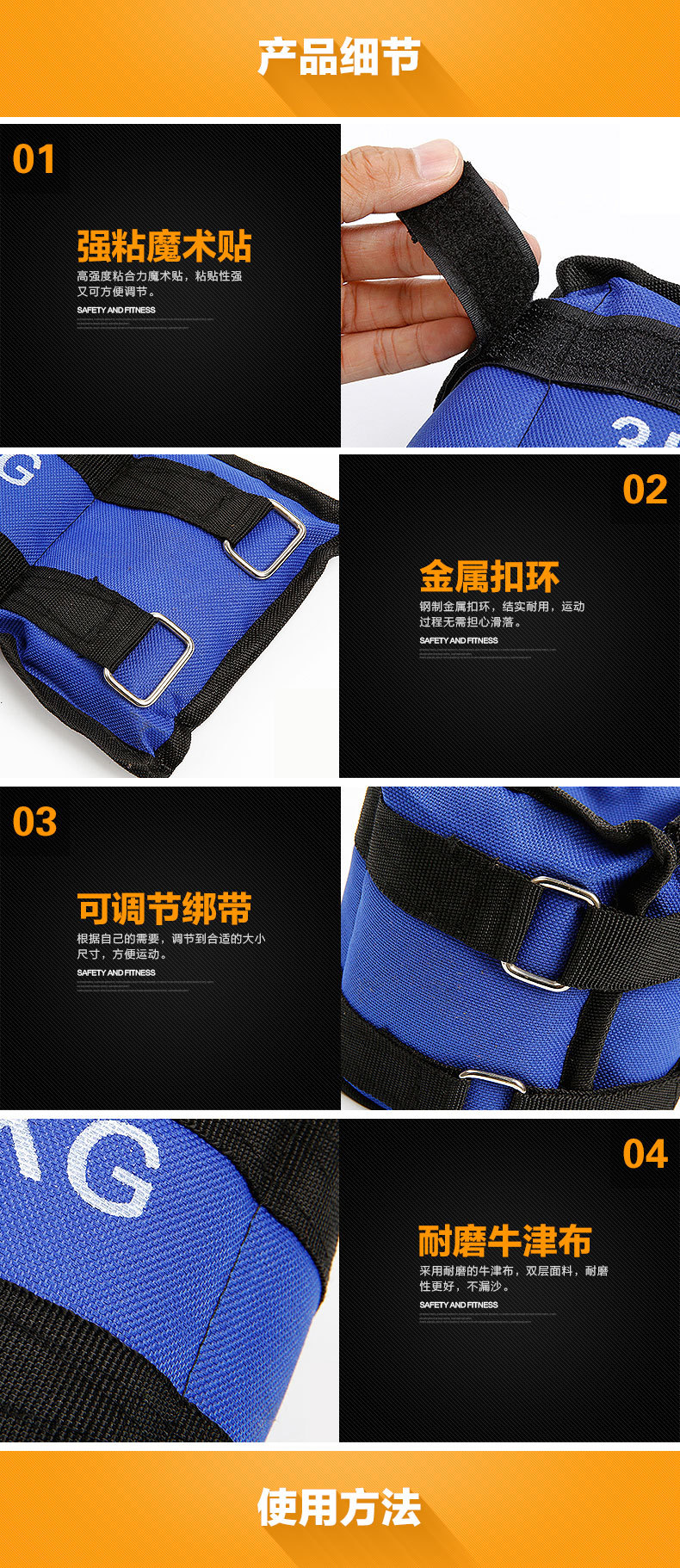 4、要减肥瘦身的朋友可以使用沙绑腿或沙绑臂进行四肢的伸展练习,前、后、侧向的抬、踢腿练习,健身操等,均有很好减肥瘦身效果。