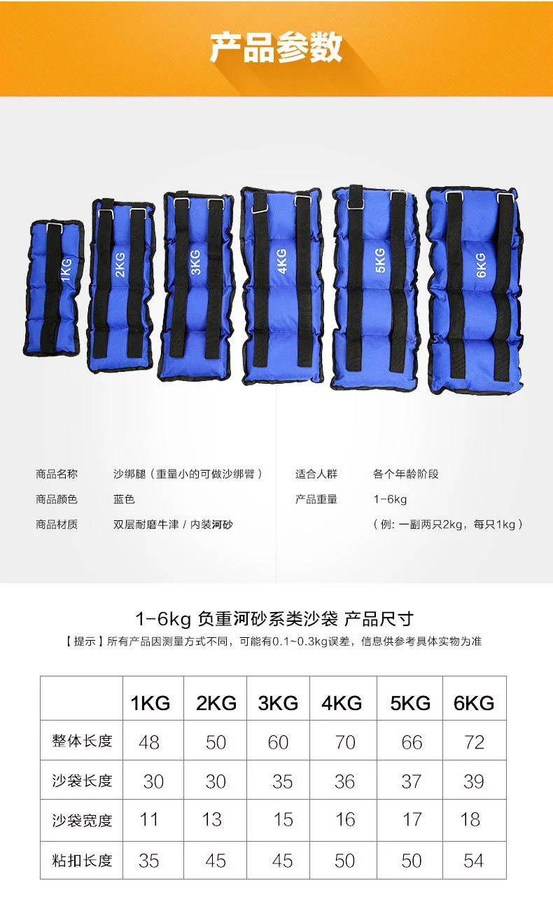 每只的重量在正负0.1公斤内,请亲们知悉。2KG的适用于有氧锻炼,绑腿或者绑手都可以使用的,