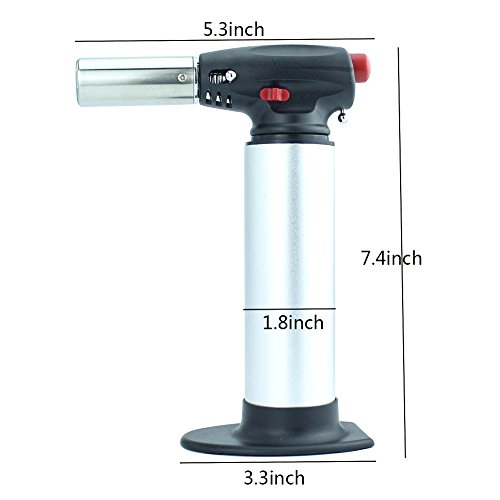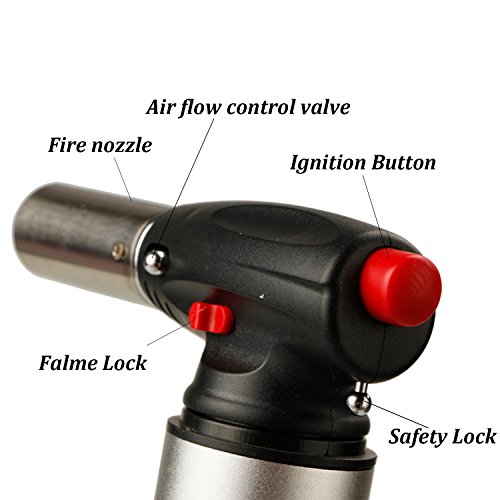 - Professional and highest quality cooking torch:Easy to operate with piezo ignition technology,Made of aluminum alloy, Durable, Will not leak gas.