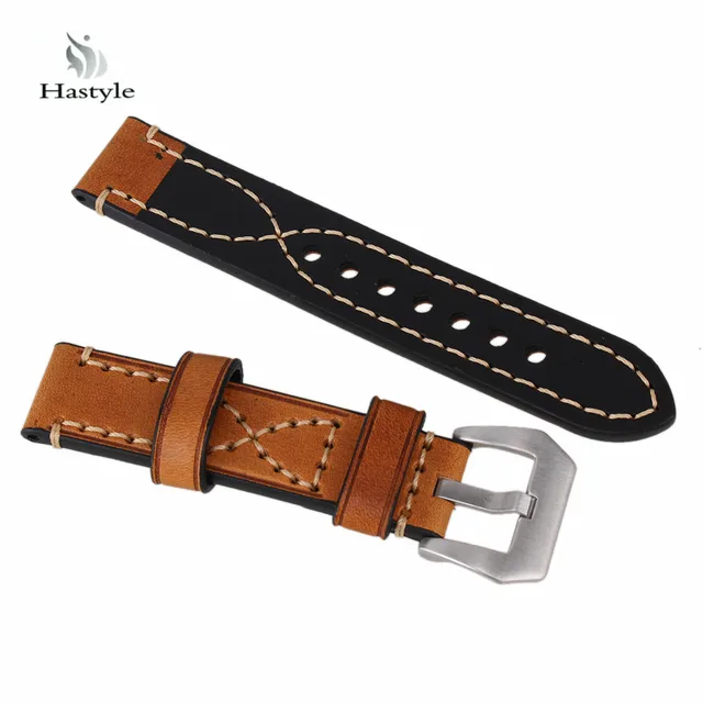 브랜드 Hastyle 브라운 20 미리메터 폭 정품 복고풍 가죽 스트랩 스틸 버클 남성 손목 시계 밴드 벨트 세 테이블 바늘