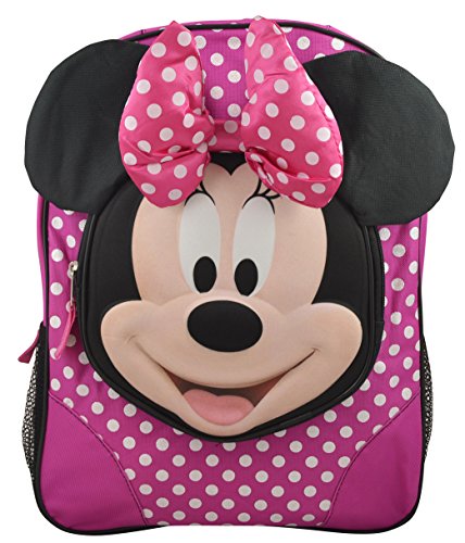 -. Brand : Disney -. Color : Pink -. Department : girls -. EAN : 0708325404120 -. Feature : Brilliant colors for dazzling with a unique 3D effect with Minnie popping out / Sparkly design! perfect for school and vacations! Well known character that your child will love having with them. The perfect set all year round! / Features one Main Compartment, One front pocket and Two side mesh Pockets. Backpack Dimensions (in inches): 16 x 12 x 5 / Bonus Minnie Mouse Clear Pencil Case / Made of an easy to clean and very durable 100% polyester -. PackageQuantity : 2 -. ProductGroup : Apparel -. ProductTypeName : LAGE -. Size : Large -. Title : Disney Minnie Mouse Girls' 3D Pop out Large 16" Backpack w Bonus Pencil Case -. UPC : 708325404120