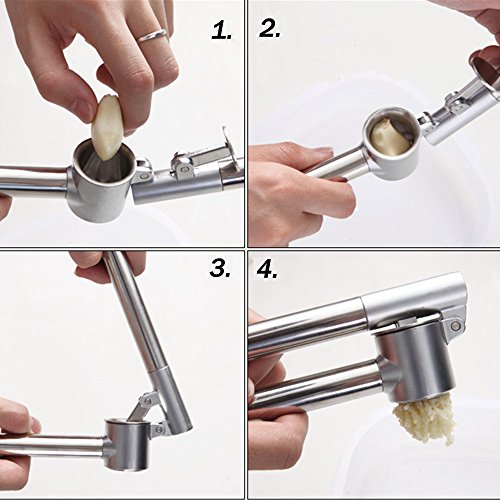 - • Easy To Clean & Dishwasher Safe - To clean your press, simply flip up its basket, rinse it under your faucet, brush it and it’s done! There are no nooks for garlic to get stuck in.And It is totally dishwasher safe.