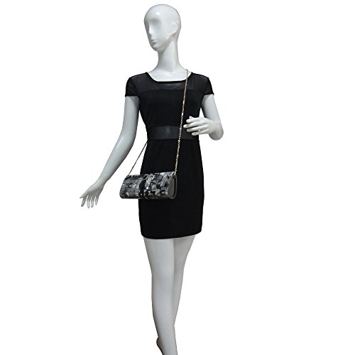 -. Feature : 11.75"L x 4.5"H / Snap closure / Wristlet strap / Removable Cross-body chain / pu leather material