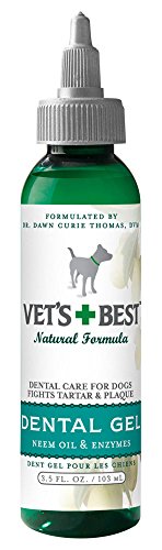 -. Binding : Misc. -. Brand : Vet's Best -. Department : Pet Care -. EAN : 0031658100965 -. Feature : Vet's Best Dog Dental Care Gel Toothpaste cleans away tartar and plaque to help support dental hygiene; whitening and brightening at the same time / Dental Care Gel Toothpaste for Dogs uses key natural ingredients- Neem Oil, Grapefruit Seed Extract, and Enzymes to keep breath fresh and teeth clean / Simple application - use a brush or your finger to apply dental gel to your dog's teeth 2 - 3 times per week / For best results, no food or water 30 minutes before and after application - this item does NOT have an expiration date. The date on the product is the born-on date -. IsAutographed : 0 -. IsMemorabilia : 0 -. Label : Bramton Company -. Manufacturer : Bramton Company -. Model : 3165810096 -. MPN : 3165810096 -. NumberOfItems : 1 -. PackageQuantity : 1 -. PartNumber : 3165810096 -. ProductGroup : Pet Products -. ProductTypeName : PET_SUPPLIES -. Publisher : Bramton Company -. Size : 3.5 Ounce -. SKU : 00GEYI-000 -. Studio : Bramton Company -. Title : Vet's Best Dental Gel Toothpaste, 3.5 OZ -. UPC : 031658100965