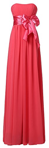 This long chiffon dress with Sweetheart design is very lovely and eyes catching. The dress with a removeable belt, you can make a Bow front or back, any you want:) .The fabric is chiffon with light, soft, smooth and straight features, which is mostly used in women's fashionable special occasion dresses such as prom dress, girls' party dresses,homecoming dresses, beach party dresses.Perfect choice for evening gown and wedding dress.